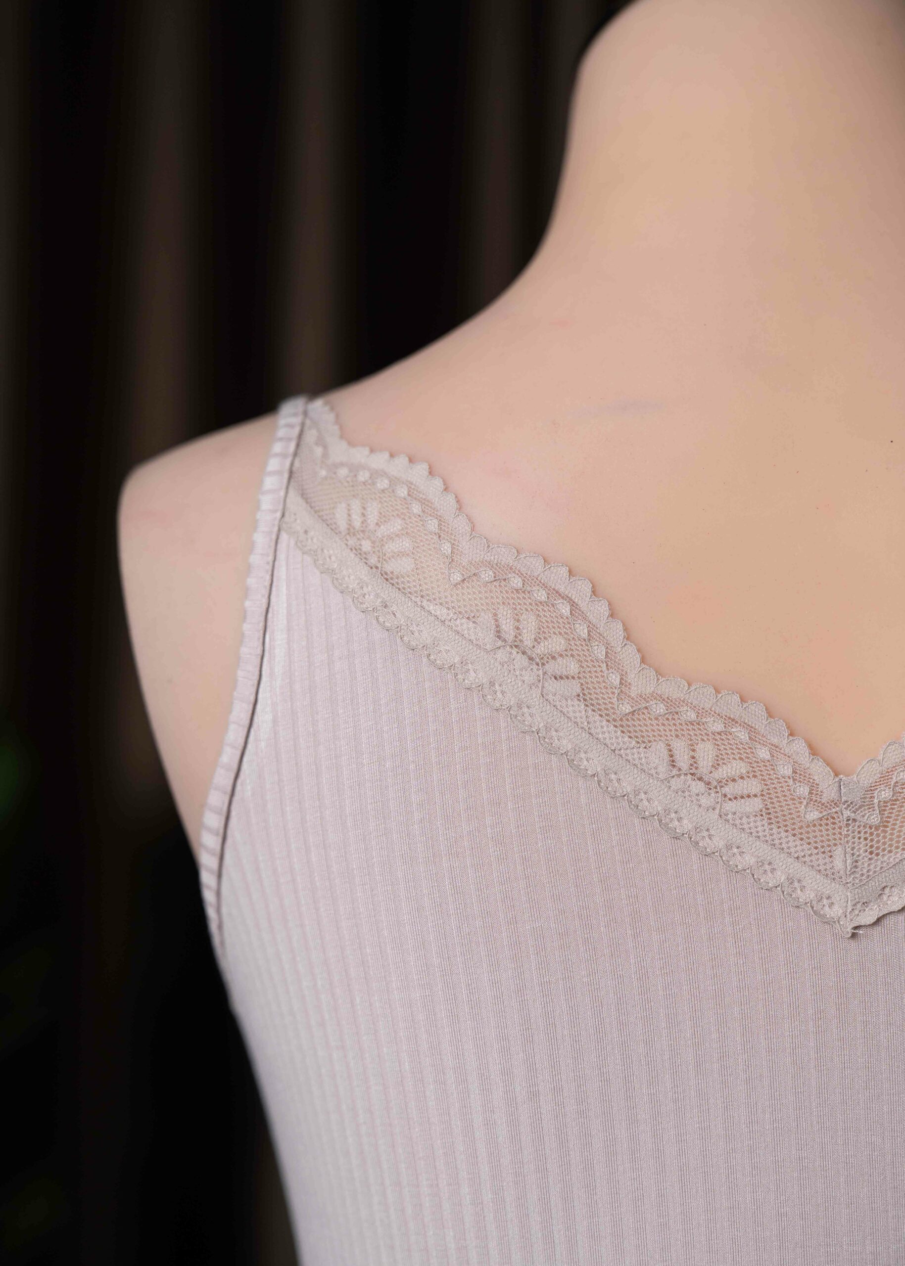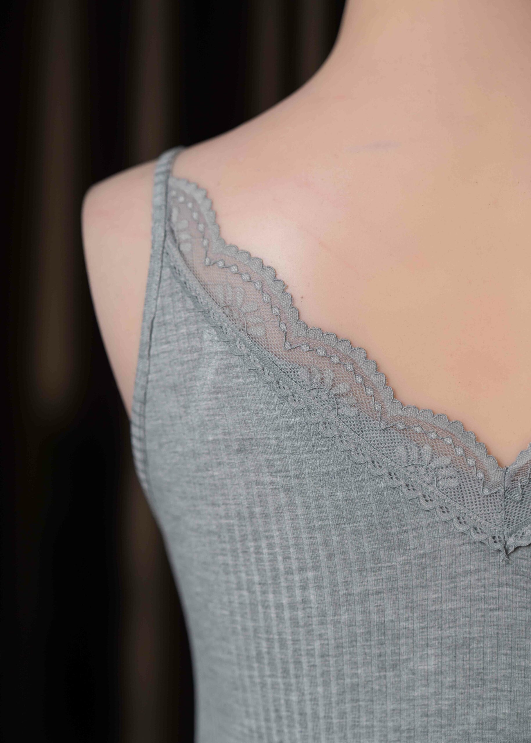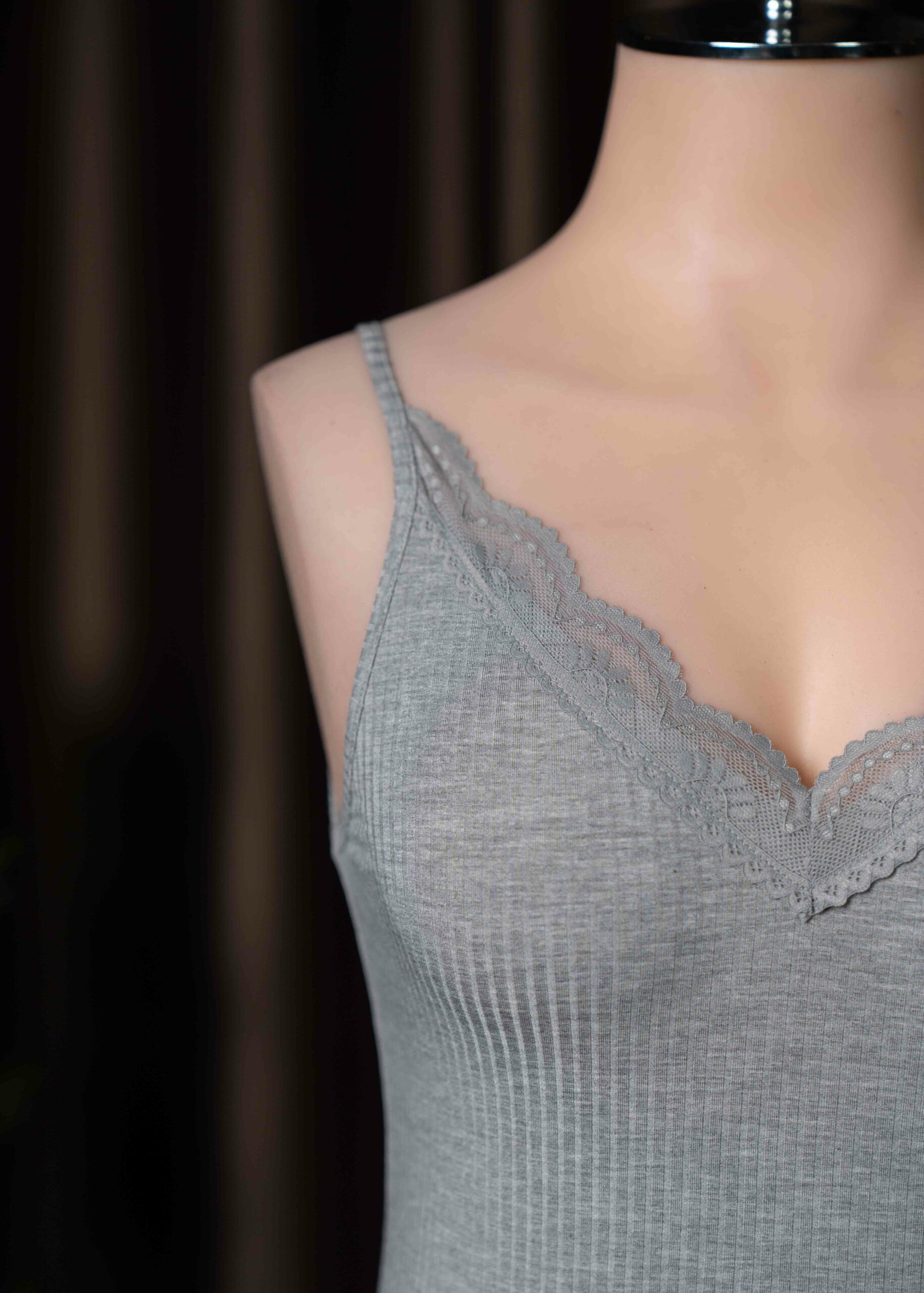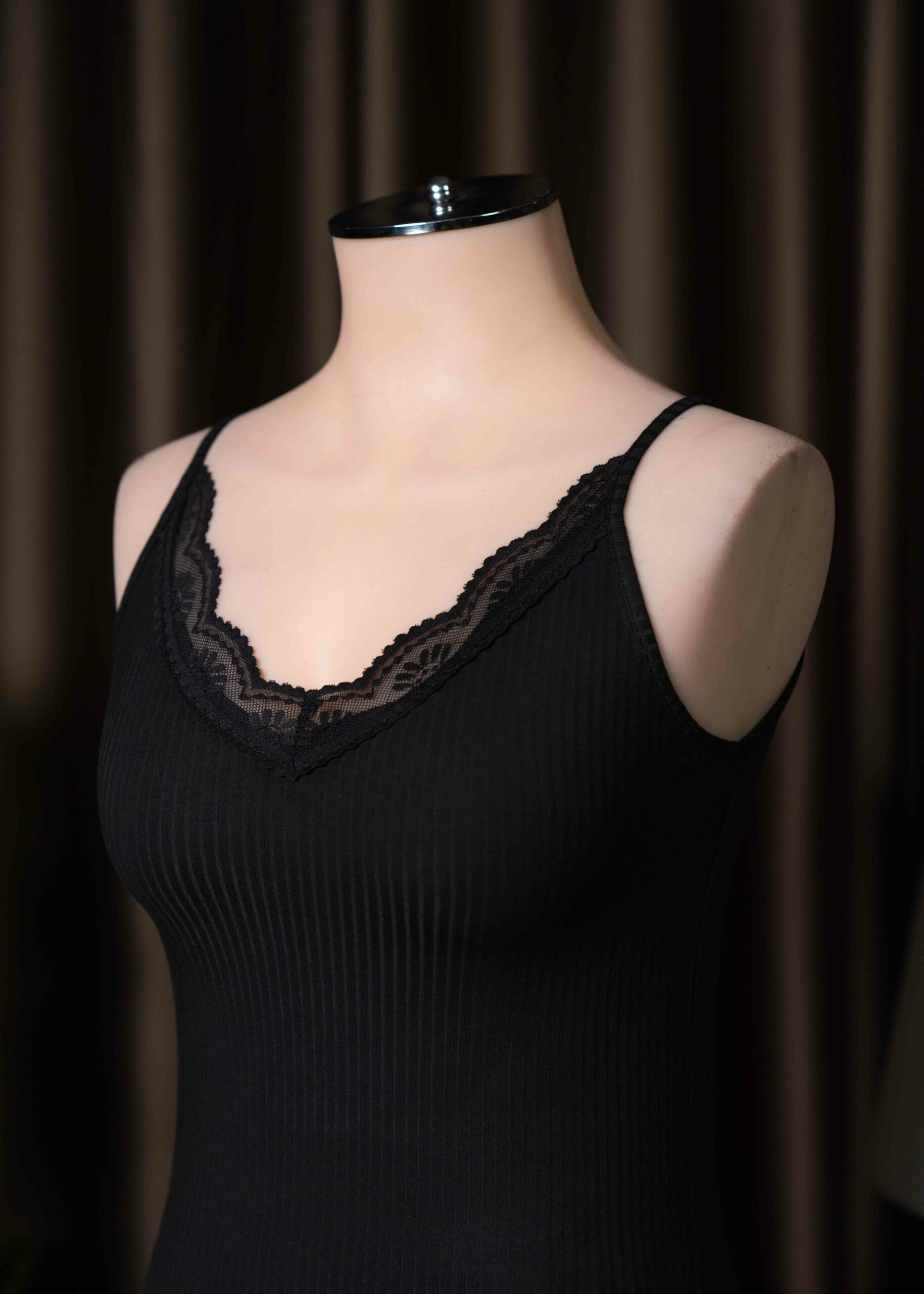 - Detailing : Stretch pattern mesh fabric on the chest, no adjustable strap (spaghetti strap), full length.